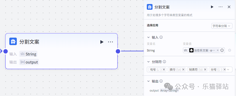 使用文本插件,将文案分割为多个短句,注意这里的应用选择【字串分隔符】