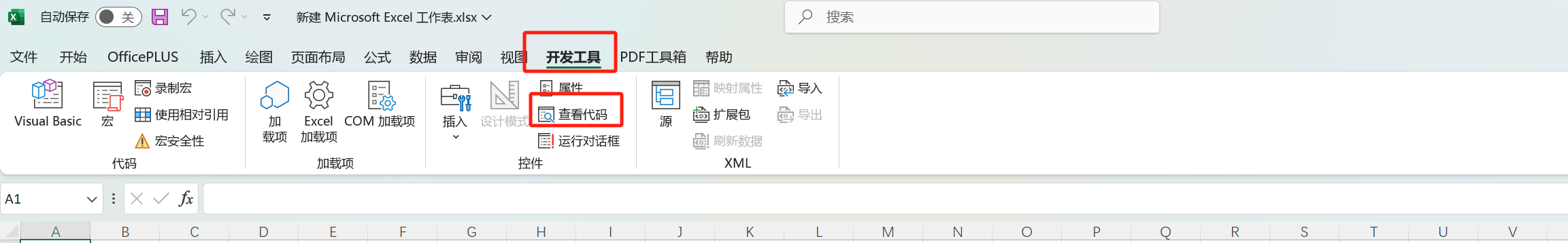打开EXCEL 找到 【开发工具】 点击 【查看代码】